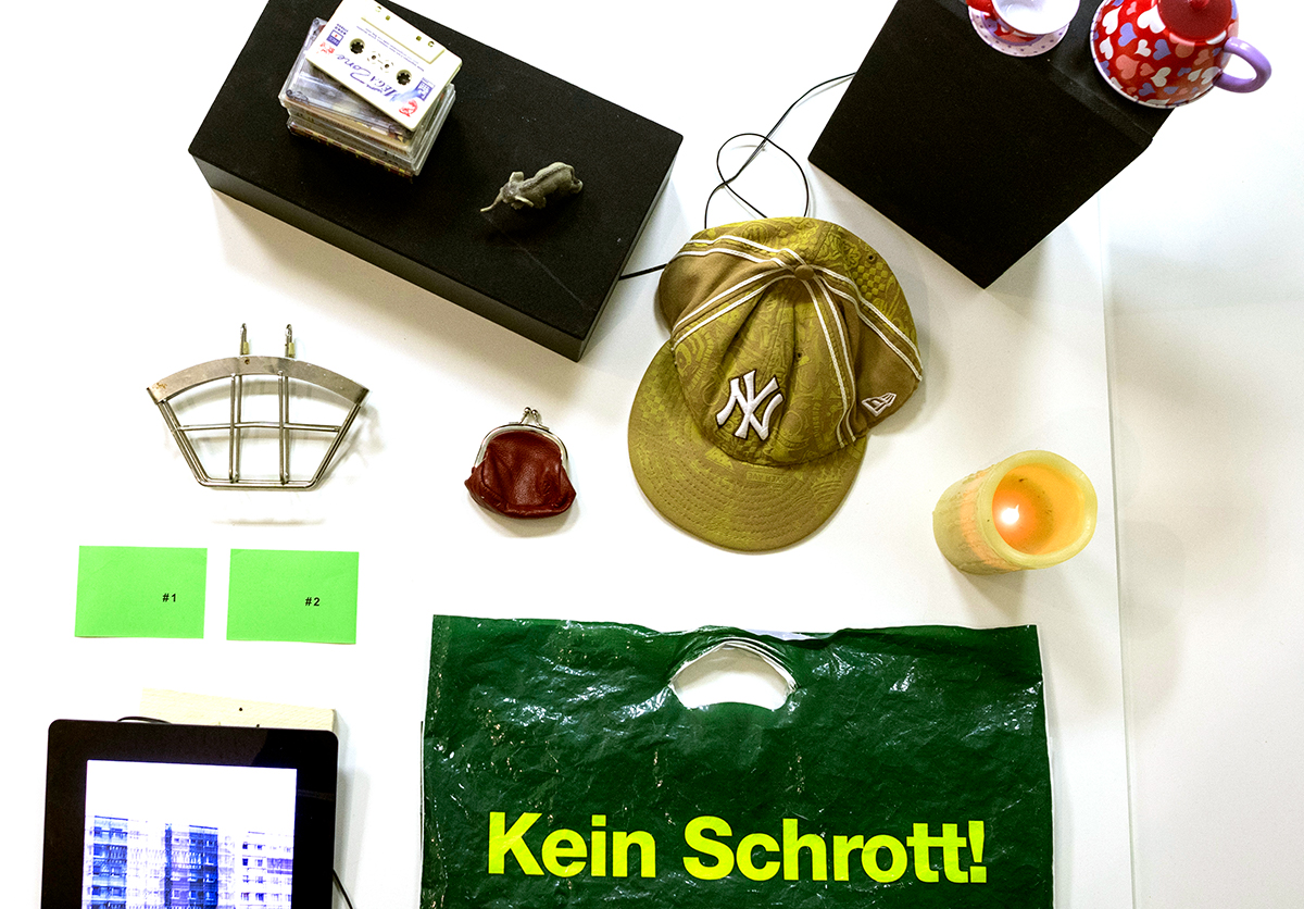 Nadine Adams Modell von Halle-Neustadt setzt sich mit den Strukturen und Formen der geplanten Modulstadt auseinander und geht der Analogie zu Zellwänden nach. Auch politische Grenzen sind nicht abgeschirmt, sondern hinsichtlich bestimmter Ideen osmotisch durchlässig. Ihre Arbeit ist eine Diagrammatik des Diffundierens und der Transformation.